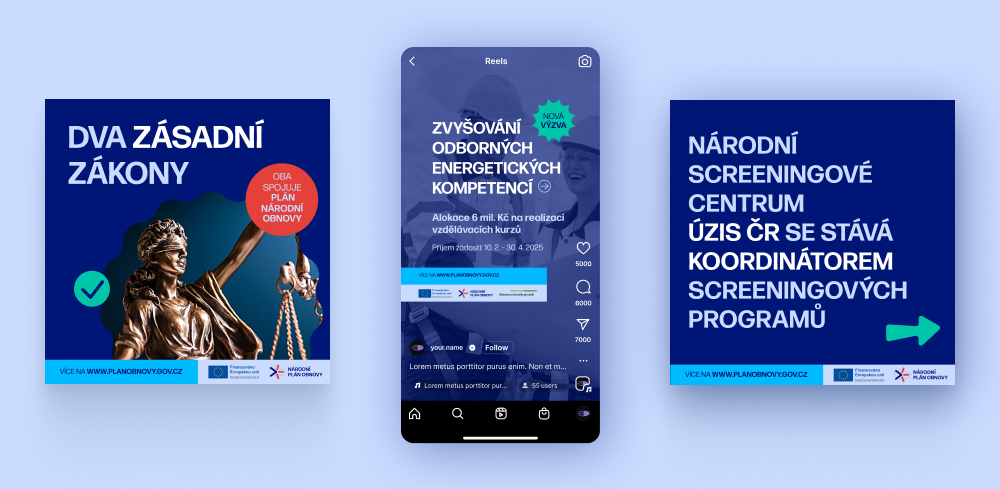 Na straně NPO jsme pracovali se dvěma hlavními výstupy. Prvním byl vizuální systém pro sociální sítě - analyzovali jsme dodaný design systém v podobě šablon, poskytli zpětnou vazbu na technické nedostatky a navrhli sadu social media šablon a videošablon ve vizuálně jednotném stylu
